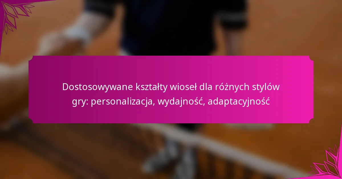 Dostosowywane kształty wioseł dla różnych stylów gry: personalizacja, wydajność, adaptacyjność