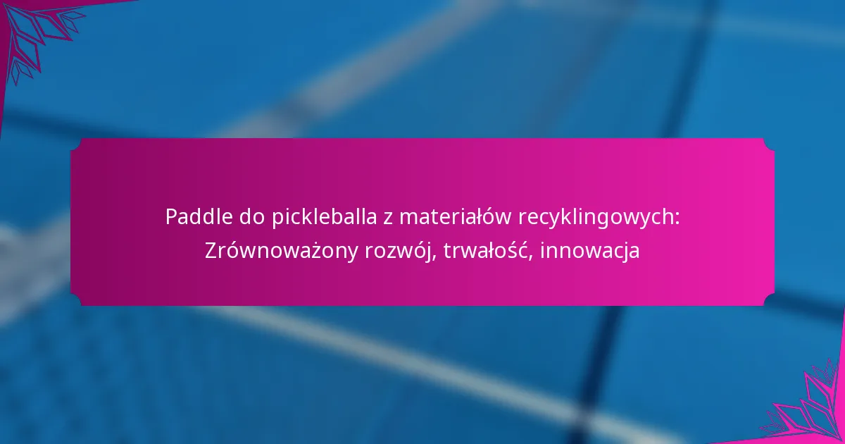 Paddle do pickleballa z materiałów recyklingowych: Zrównoważony rozwój, trwałość, innowacja